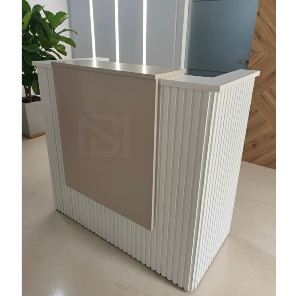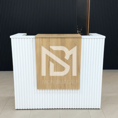 Bureau réception avec une touche de bardage avec 2 tiroirs ( 1 à clé )